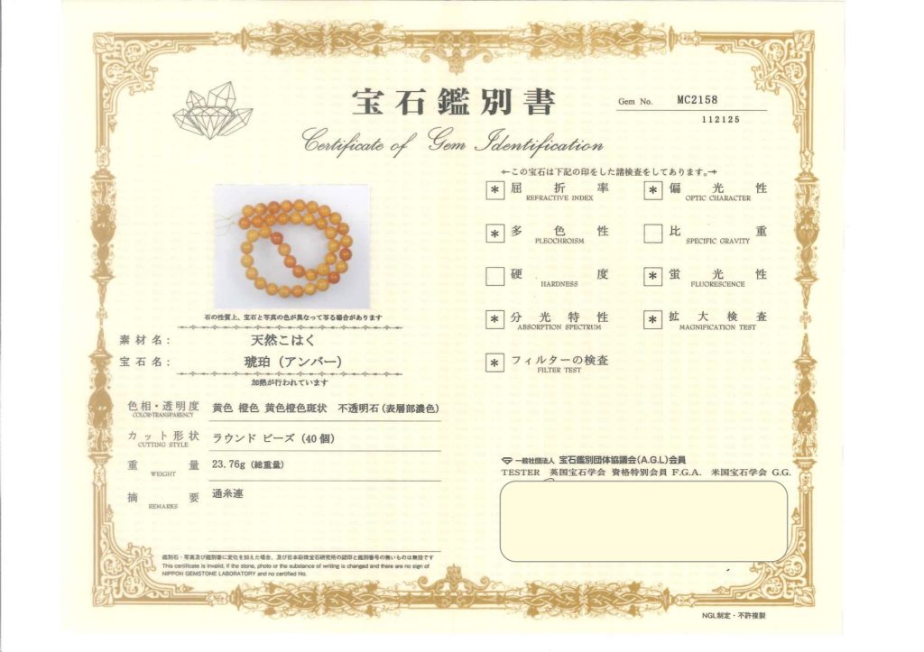 天然琥珀以外は「処理石・模造石」に分類されるべきものと思います