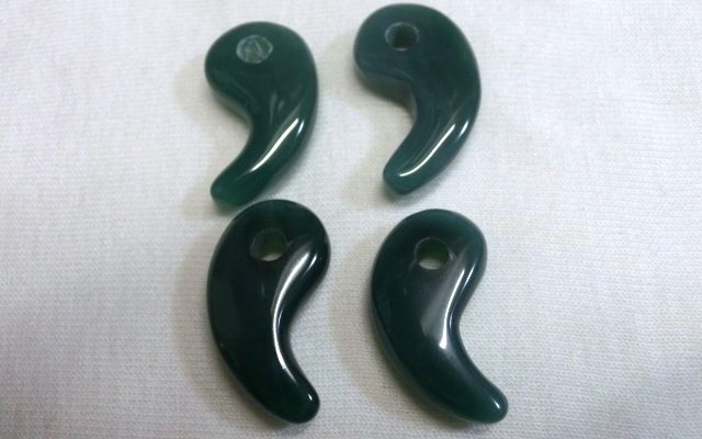 勾玉/Magatama サイズは 縦径 x 厚み Black Chalcedony 35-38mm x 10mm Magnesite(dyedTQ) 30mm x 10mm Green Agate 25mm x 6mm Carnelian(Red Agate) 25mm x 6mm Magnesite 25mm x 6mm Synthetic Quartz 25mm x 5mm